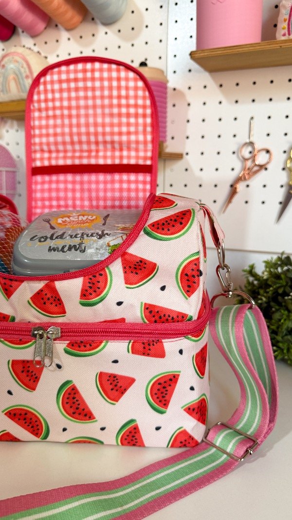 En esta ocasión, les presento a la LONCHERA SANDI🍉❤️ una lonchera de doble compartimiento, suuuuper amplia y con correa regulable para llevar a todas partes😍